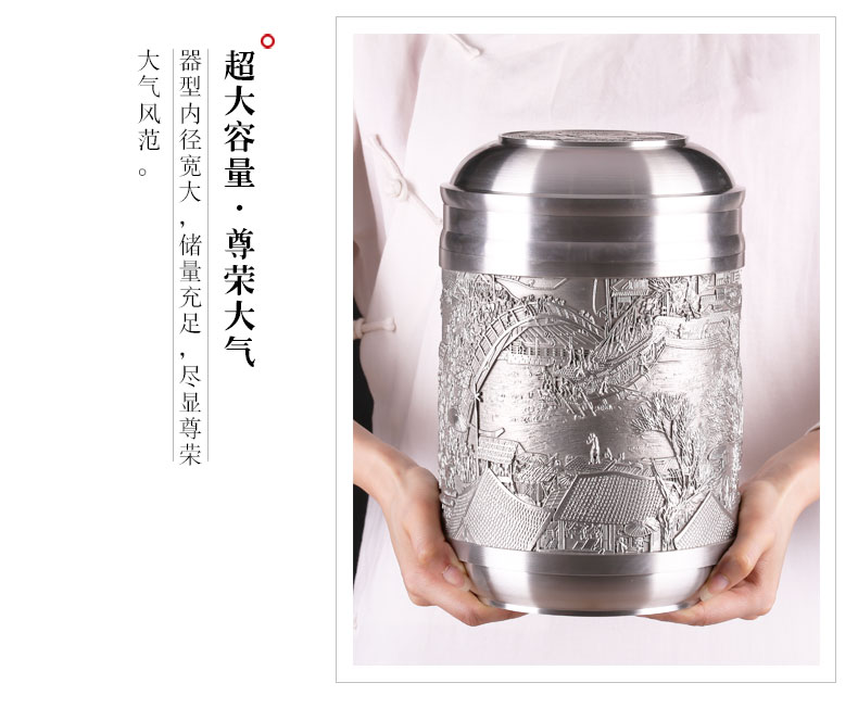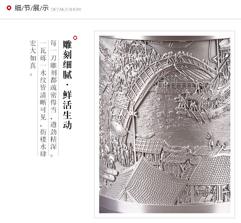 - 當(dāng)前位置:首頁 > 特色禮品 > 廖達錫器 > 工藝禮品 > 《清明上河圖》純錫茶葉罐